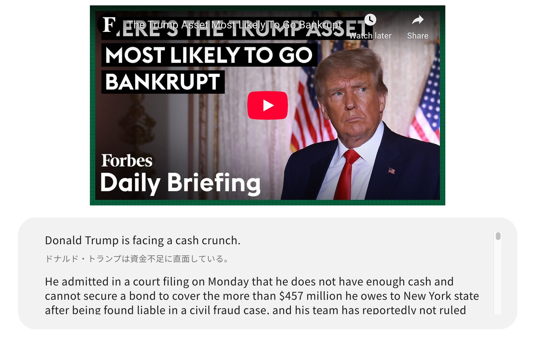 世界の様々な動画を使った教材です。エンタメからビジネスまで、幅広いジャンルの動画が毎日10チャプター追加されます。