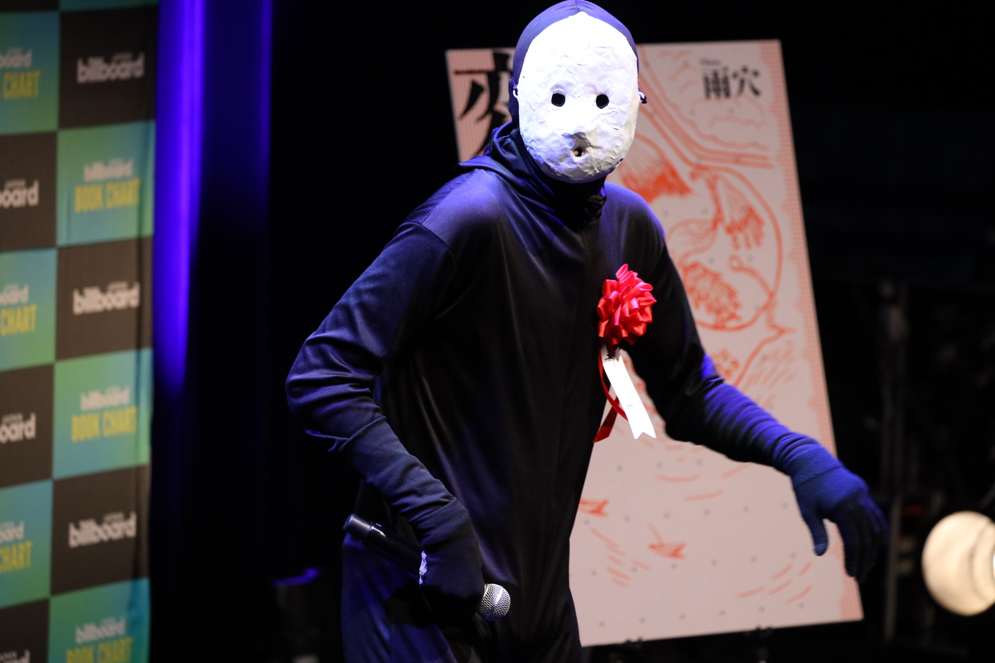 イベントの最後には、会場に集まった書店員ら約30名が雨穴の仮面を被り、「変な記念撮影」を実施。ステージ上でのパフォーマンスに加え、読者や書店員をはじめとする関係者一人ひとりに直接感謝の言葉を述べ、雨穴にとって初となる「変な授賞式」は、大きな拍手の中で幕を閉じた。