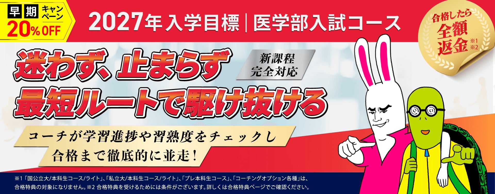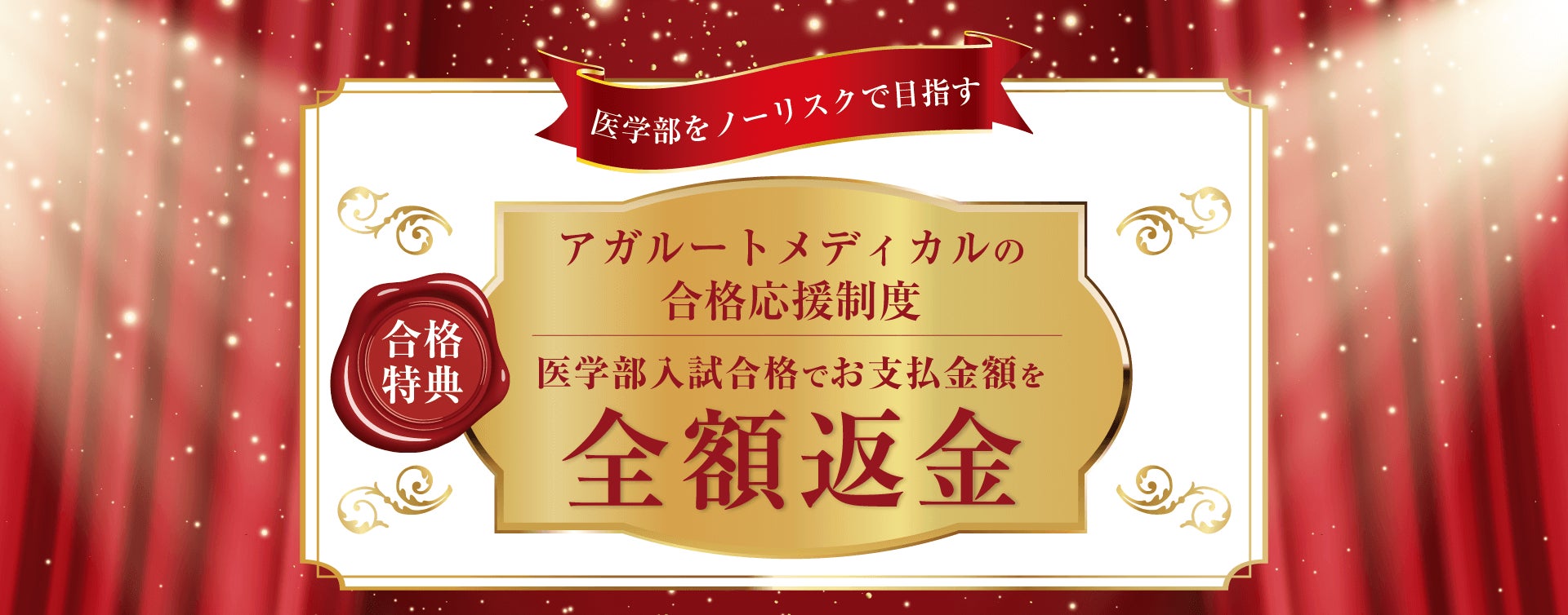 2027年入学目標 医学部入試コース(国公立大学・私立大学入試)をお申込みいただいた方が2027年の医学部入試に合格された場合、合格特典(全額返金)がございます。