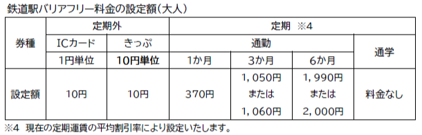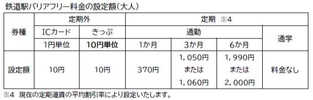 鉄道駅バリアフリー料金を加算した運賃に関する詳細は、後日改めてお知らせいたします。