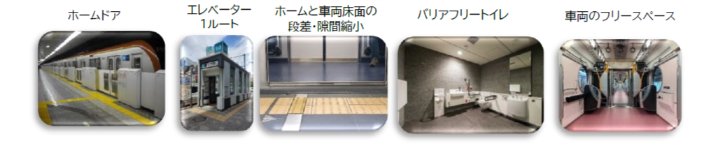 このたび、第二次交通政策基本計画(2021年5月28日閣議決定)で示された「誰もがより快適で容易に移動できる、生活に必要不可欠な交通維持・確保」の基本方針のもと、バリアフリー設備整備にあたっては国により2021年12月に創設された鉄道駅バリアフリー料金制度を活用することといたしました。お客様の薄く広い負担を得て、年齢や障がいの有無に関わらず全てのお客様が安全・安心で快適にご利用できる環境を整えるため、2025年度までのホームドア全線整備をはじめとした、各種バリアフリー設備の整備を着実に推進してまいります。