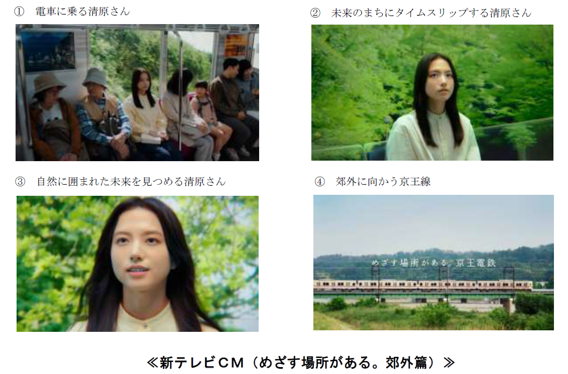 今回放映する「めざす場所がある。郊外篇」では、清原さんが乗った電車に、自然が広がる未来のまちと人々の暮らしが映し出され、京王電鉄が地域と一つになり、これから進めていくまちづくりの「めざす場所」を鮮やかな光景とともにお伝えします。