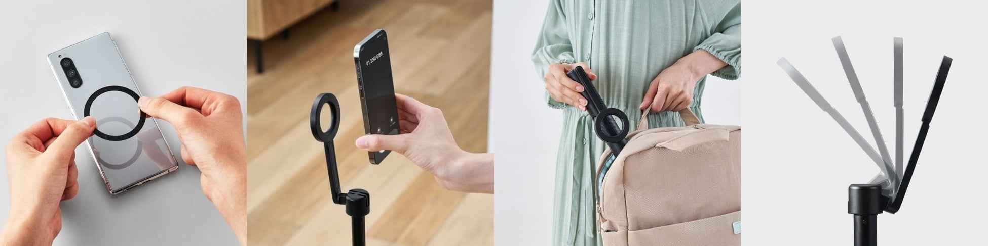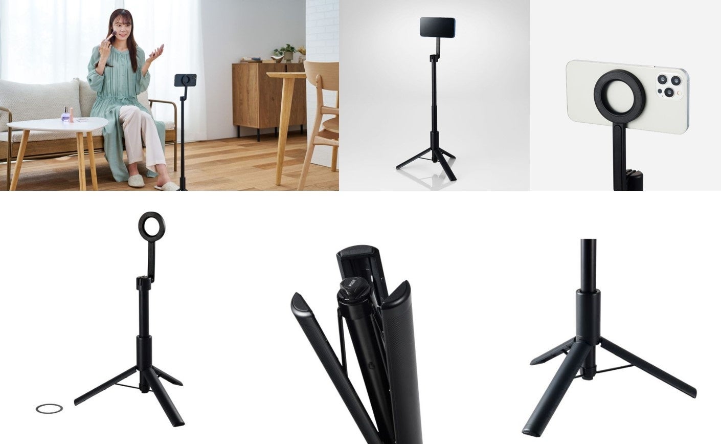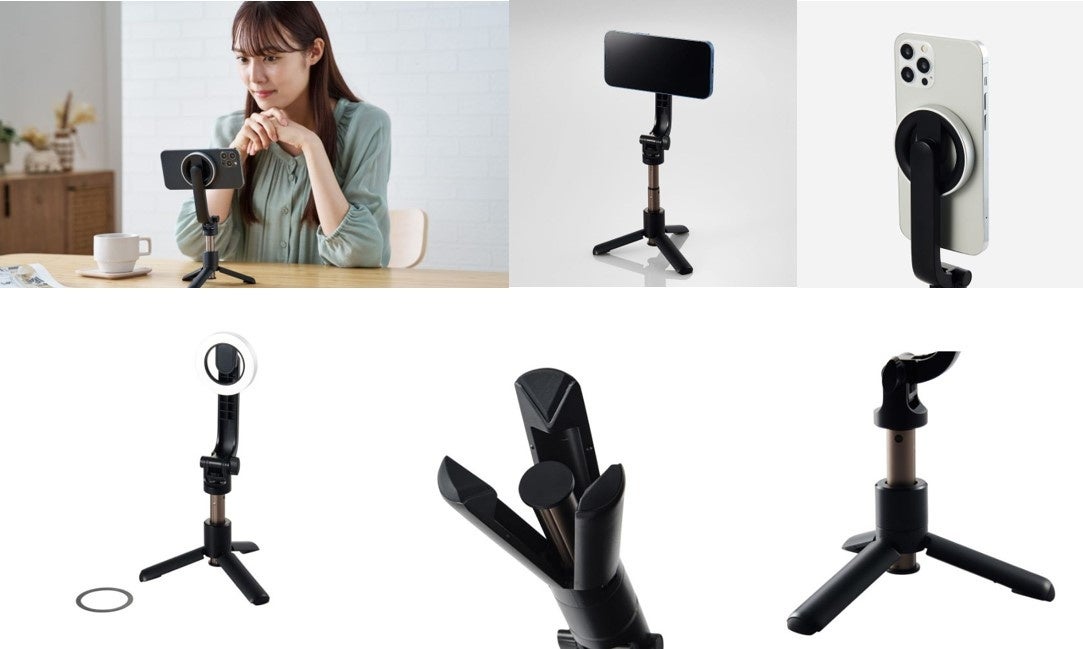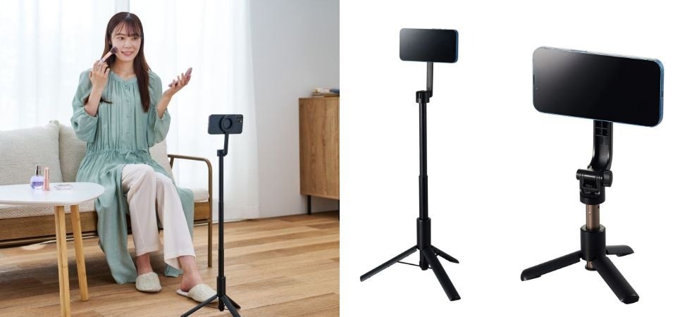 マグネットで簡単に着脱可能!MagSafe非対応の機種でも使用可能な床用と卓上用のスマートフォン三脚スタンドを新発売