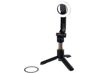 ※当製品は卓上置きタイプです。落下する恐れがあるため、自撮り棒のようにスマートフォンを付けたまま持ち歩かないでください。