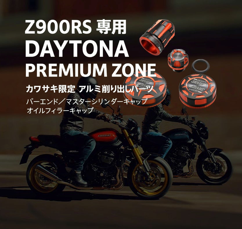 株式会社カワサキモータースジャパン(本社:兵庫県明石市、代表取締役社長:佐伯 健児)は、株式会社デイトナ製の高品質アクセサリーシリーズ「DAYTONA PREMIUM ZONE」より、Z900RS専用・カワサキ限定仕様アイテムを販売することをお知らせいたします。