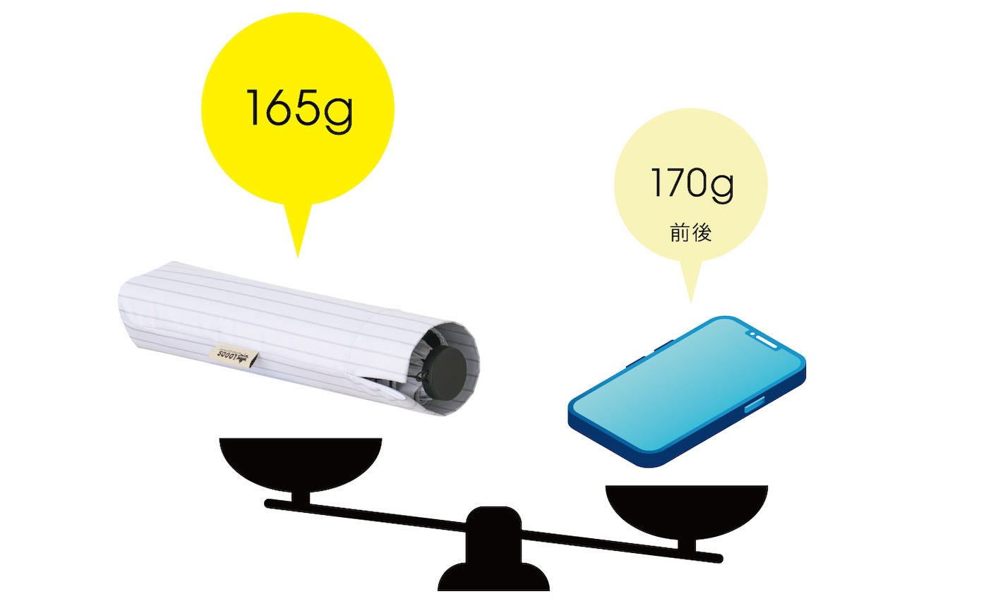 重量はわずか165gと、スマホよりも軽量。長時間傘をさしたり、持ち運びする際の負担も軽減。