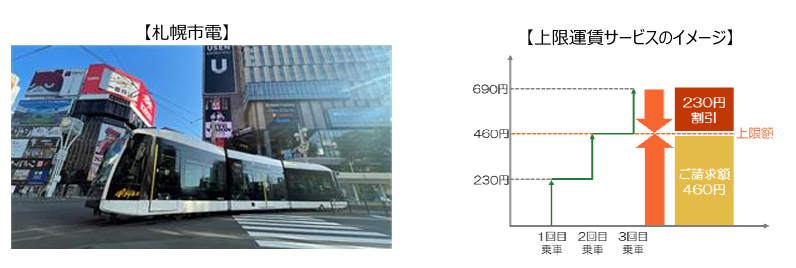 上限運賃サービスは、1日乗車券等とは異なり、窓口や専用アプリ等での事前購入が不要であるため、すでに導入している他の公共交通機関のお客さまからもご支持いただいております。そのため、札幌市電においては「クレカ乗車」サービス開始当初から上限運賃サービスを導入することとなりました。