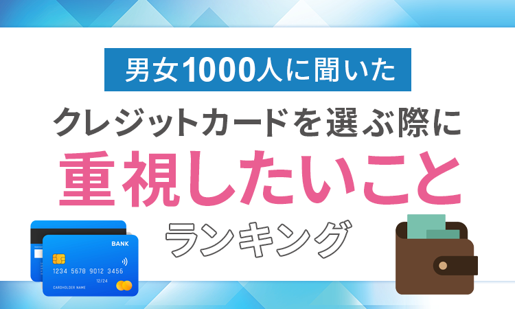 そこで今回は、クレジットカードを持っている全国の男女1000名を対象に、「クレジットカードを選ぶ際に重視したいことランキング」についてのアンケートをおこないました。