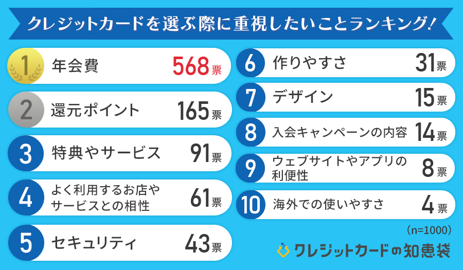 クレジットカードを選ぶ際に重視したいことランキング |