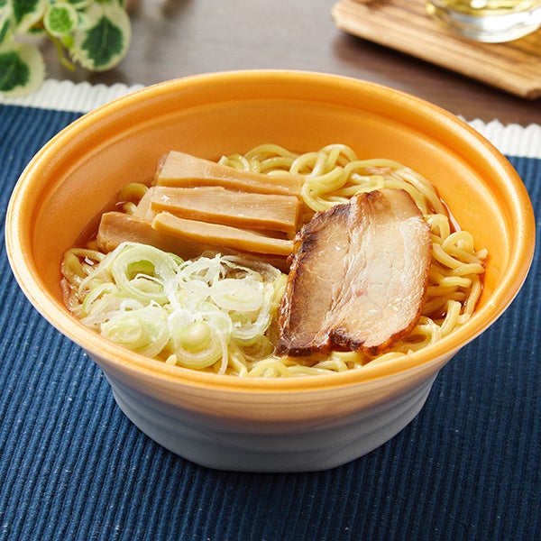 【内容】煮干し、焼あごなどの魚介系の旨みと、豚骨、鶏骨などの動物系の旨みを合わせてあっさりとした味わいに仕上げた醤油スープに、コシと弾力があるちぢれ三層中華麺、脂身の口どけが良い豚バラ肉のチャーシューと、メンマ、ねぎを合わせました。