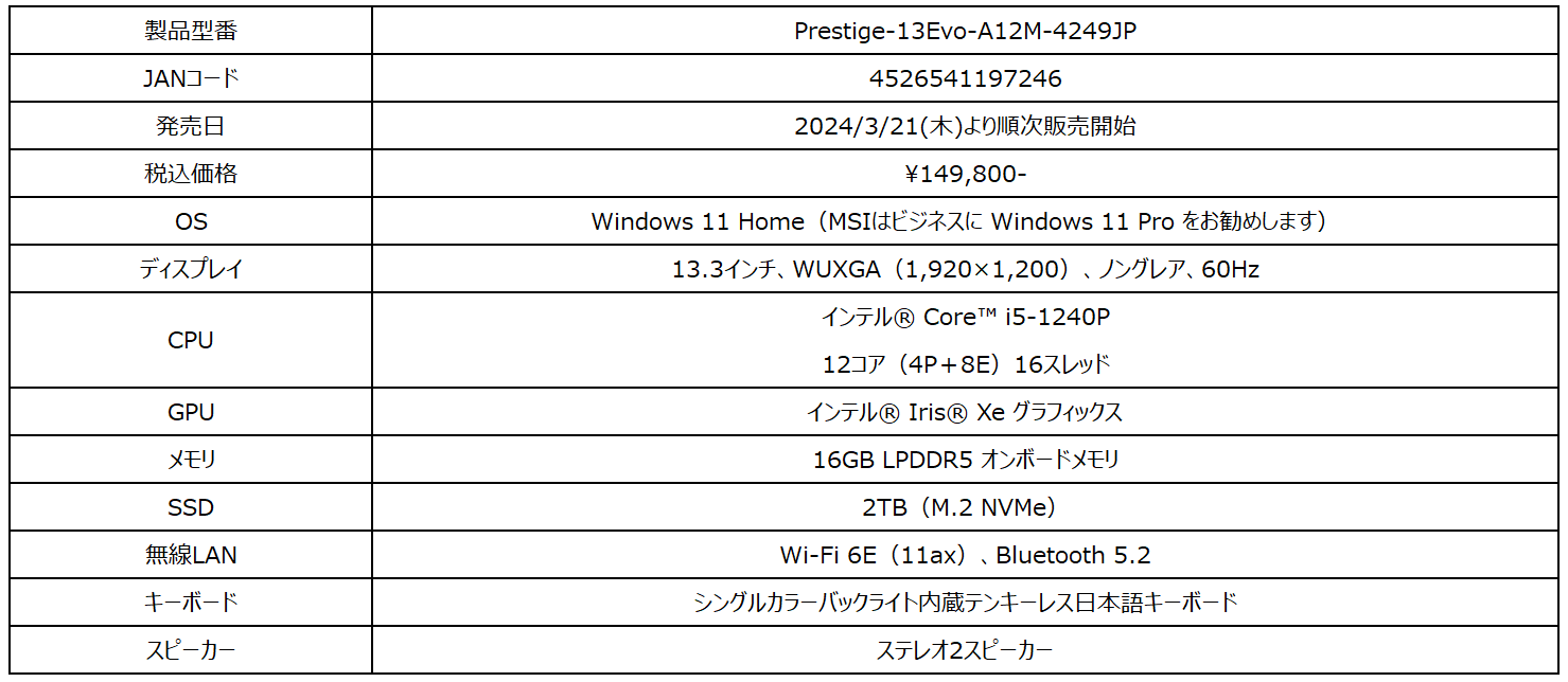 https://jp.msi.com/Business-Productivity/Prestige-13-Evo-A12MX