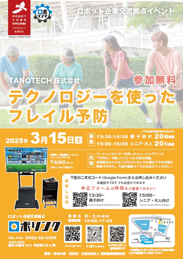 藤沢駅近隣のロボット企業交流拠点「ロボリンク」で、モーションセンサーを使ったトレーニングツール「TANO」の体験イベントを開催します。