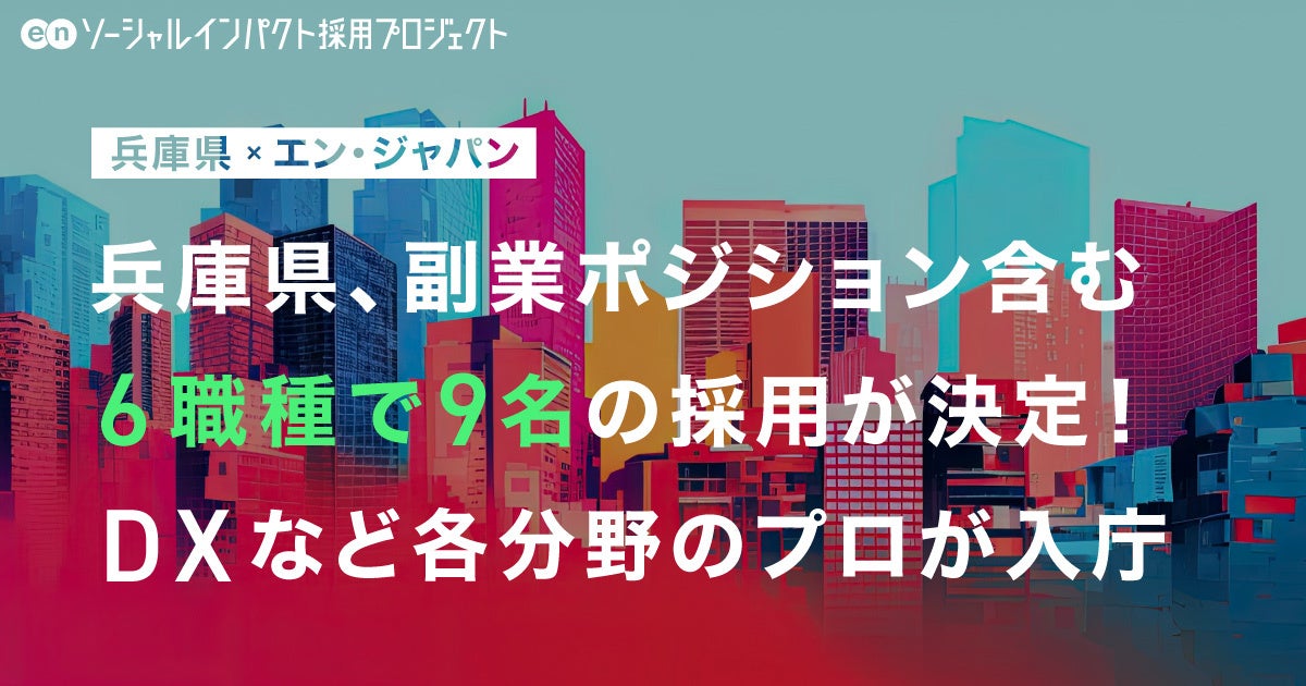 兵庫県、エン・ジャパンで初公募の副業ポジション含む6職種9名の採用が決定!