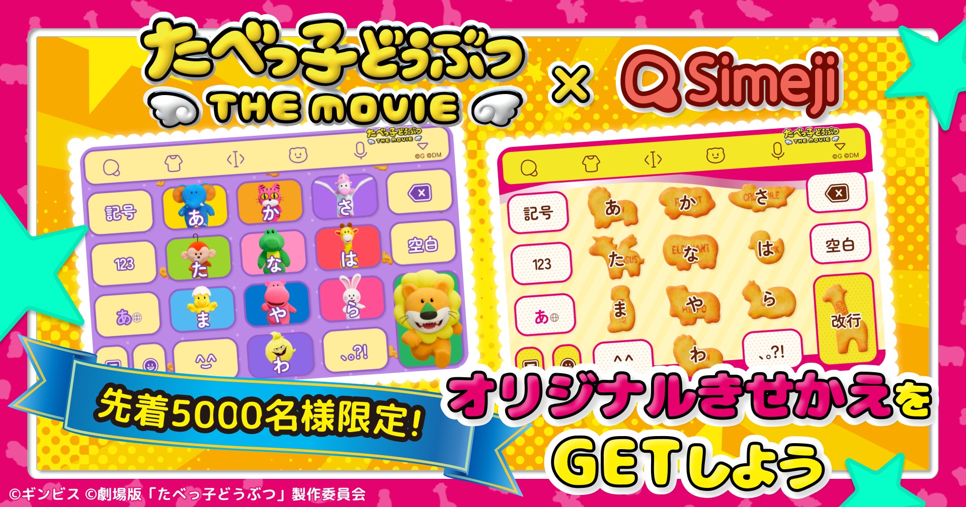 Z世代に大人気!キーボードアプリ「Simeji」、映画『たべっ子どうぶつ THE MOVIE』とのコラボ第1弾!限定コラボきせかえキャンペーンを開催!