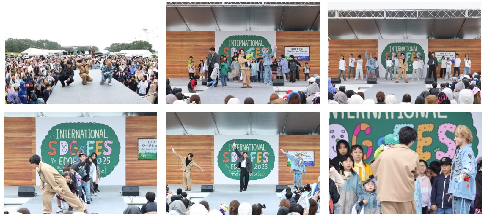 SDGs FESを締め括ったのは、EXILE TETSUYAがプロデュースする「LDHダンスワークショップショー」!1曲目からEXILE TETSUYA、GENERATIONSの中務裕太、江戸川区育ちTHE RAMPAGEの岩⾕翔吾が登場し、大人気曲「Choo Choo TRAIN」、「I Wish For You」をEXPG STUDIO OMIYA KIDSやEXPG高等学院 東京校のダンサーたちとともに大迫力のパフォーマンスで披露。「Choo Choo TRAIN」では、EXILE TETSUYAや岩⾕翔吾自らがキッズをステージに招き入れ、会場は熱気と大きな歓声に包まれました。中務裕太は、「TETSUYAさんとの共演は、実はTETSUYAさんがアキレス腱を切ったステージ以来で。一緒に踊れて嬉しいなって、感動しています。」と感慨深い想いを語り、EXILE TETSUYAは「どんな環境でも楽しく踊るというの僕らのモットー。自由に楽しんでいってください!」と笑顔で呼びかけました。
