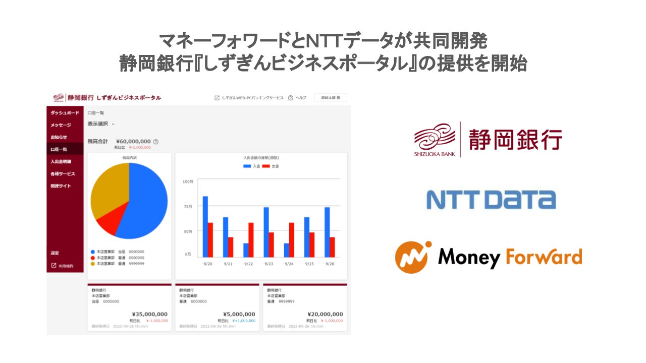 Money Forward X、NTTデータと共同開発した「法人・個人事業主向けポータルサイト」を静岡銀行へ導入