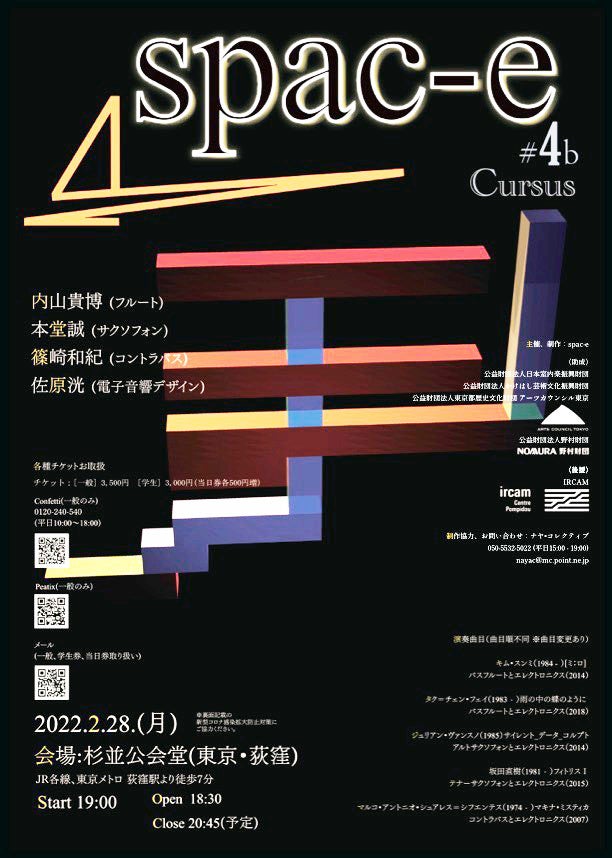 器楽と電子音響がミックスした作品などの可能性を模索するspac-e(スペース)『spac-e #4b Cursus』カンフェティにてチケット発売中!