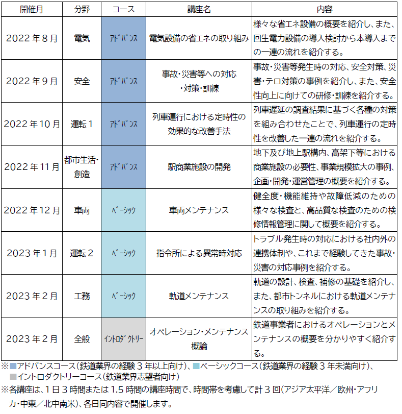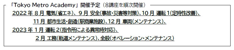 Tokyo Metro Academy 2022-2023 オンライン講座 開催内容