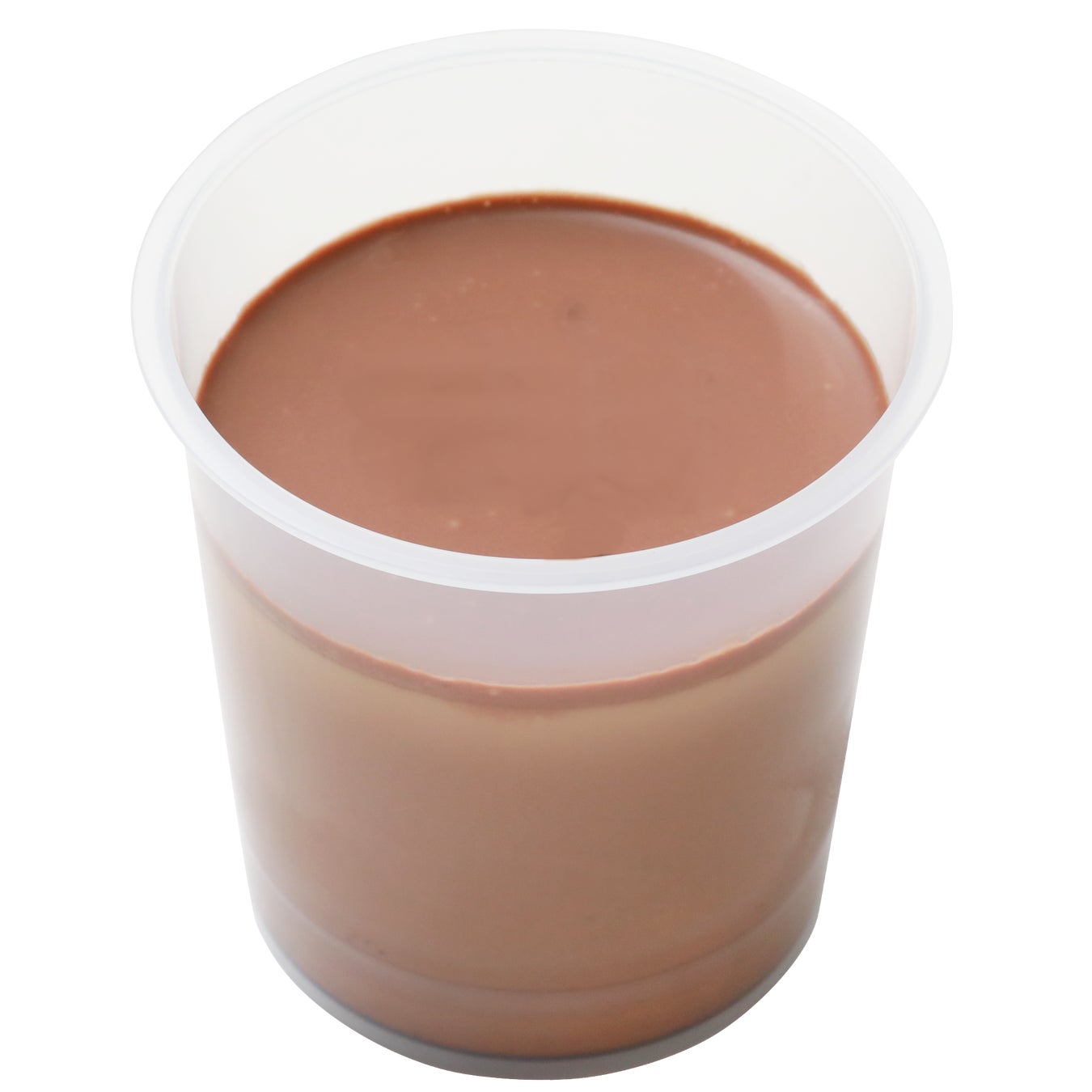 こだわり:カカオのほろ苦さを残しつつ、なめらかな食感のプリンにチョコ