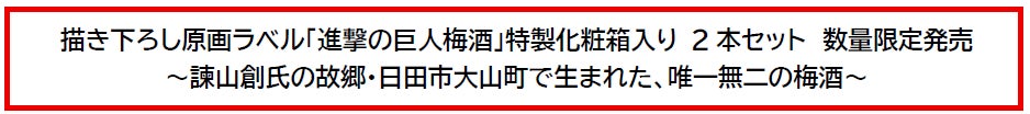 描き下ろし原画ラベル「進撃の巨人梅酒」特製化粧箱入り 2本セット 数量限定発売~諫山創氏の故郷・日田市大山町で生まれた、唯一無二の梅酒~
