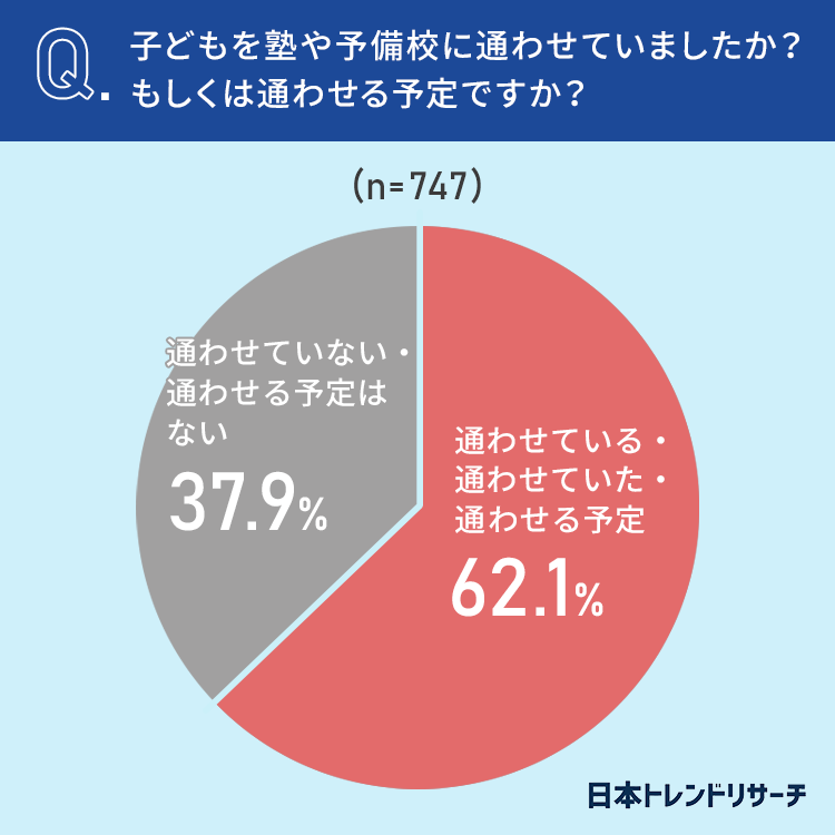 62.1%の方が「子どもを塾や予備校に通わせていた・もしくは通わせる予定」だと回答しています。