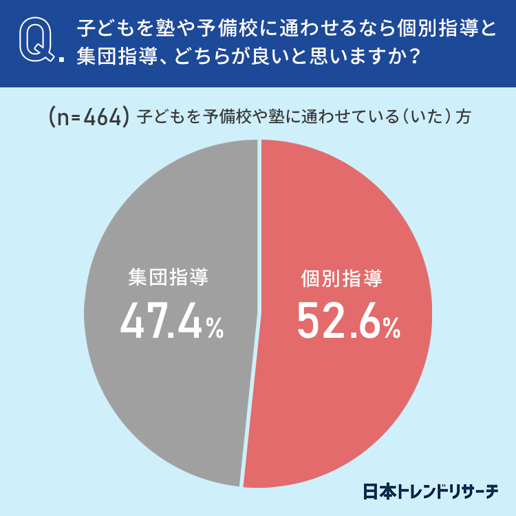 52.6%の方が「個別指導」の方がいいと回答しています。