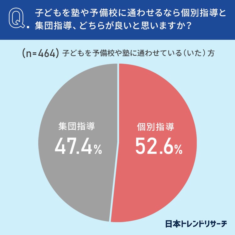 【通わせるならどっち?】子どもを持つ親の52.6%が、塾に通わせるなら「個別指導」 その理由は?