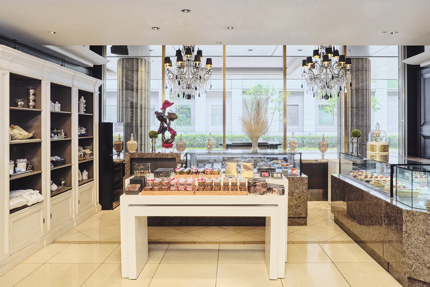 1F ロビーフロアのザ・ショップ N.Y.ラウンジブティックでは、専属のパティシエが手掛けるスイーツや焼き菓子、ホテルオリジナルのタオル、アロマエッセンスなどのお土産品を販売しております。アフタヌーンティーセットやお弁当、パーティーセットなどのテイクアウト&デリバリー商品も揃えております。また、オンラインショップでは内祝いなどの贈り物におすすめの商品をラインナップ。全国へ発送を承ります。