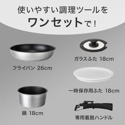 【商品名】IH・ガス火 取っ手が取れる軽くて扱いやすい 超軽量鍋・フライパン7点セット