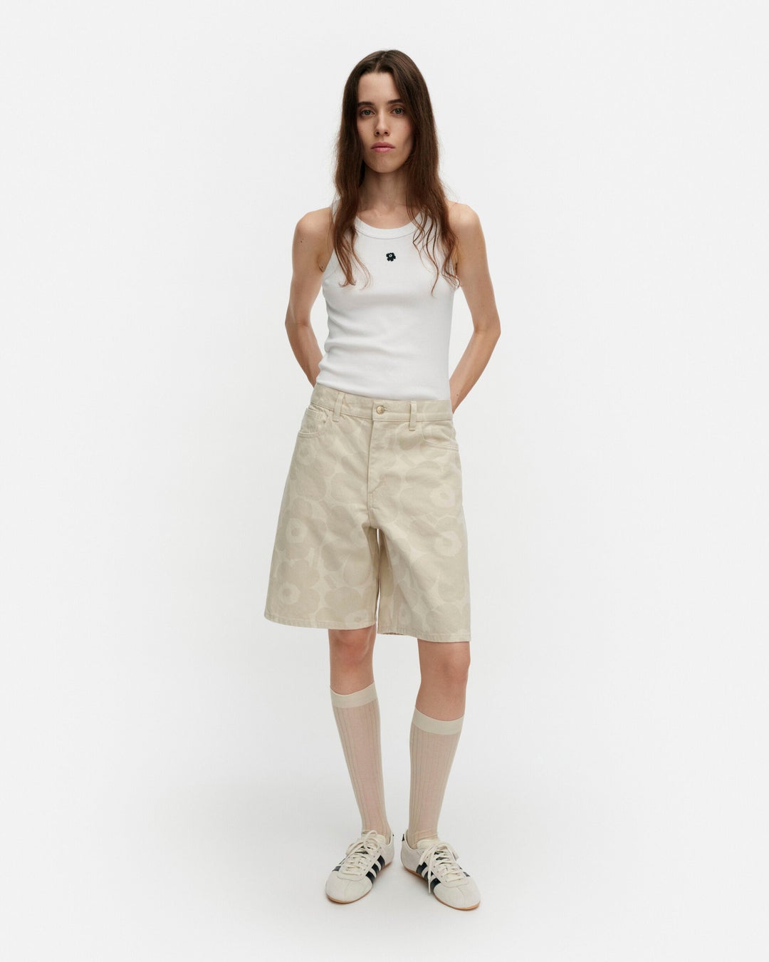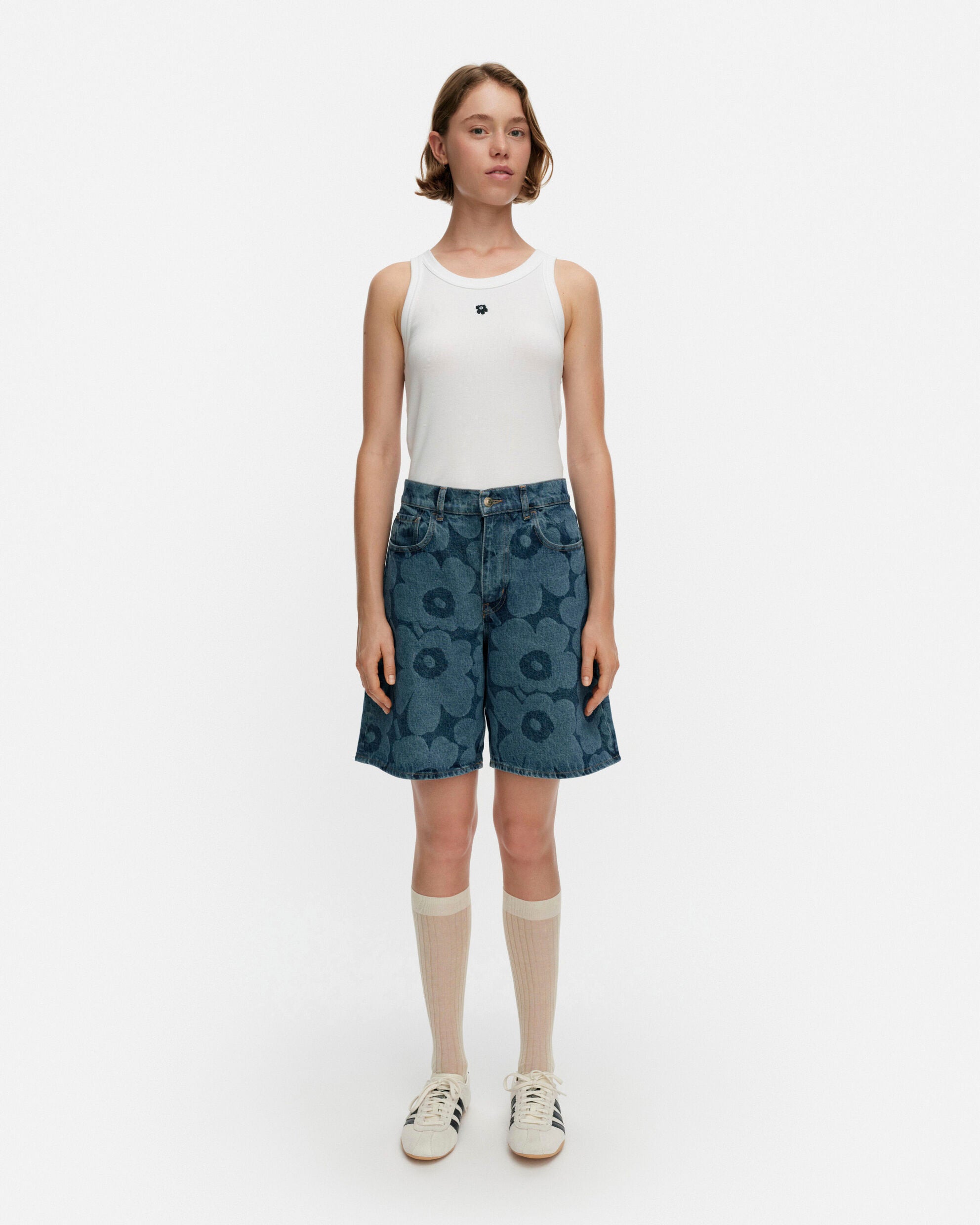 本コレクションに登場する新作デニムアイテムは、全8型。マイヤ・イソラ(Maija Isola)によるブランドを象徴するプリントであるウニッコ(Unikko)をあしらったエクリュのジャケットやパンツが登場します。また、新たにプリントに加わるのは、1965年にアンニカ・リマラ(Annika Rimala)が多彩なデザインスタイルの遊び心を表現したフラワープリントの「クッカ(Kukka)」。