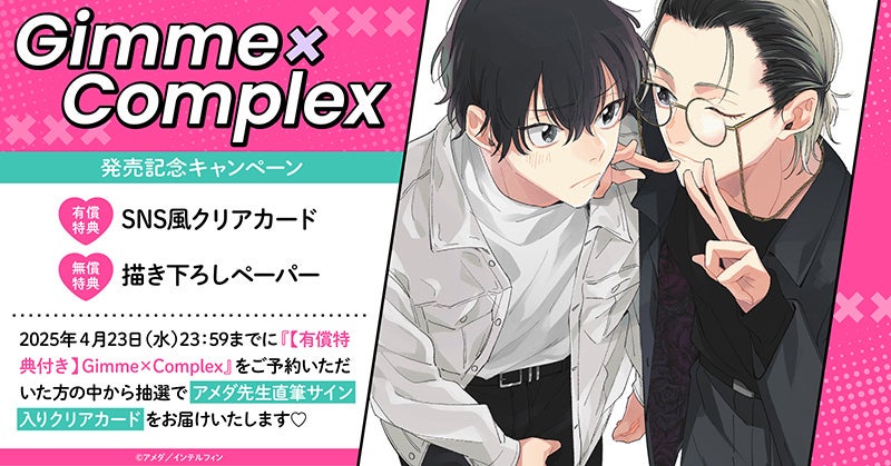 ※ご当選者様には、コミックス「Gimme×Complex」+有償特典クリアカード(直筆サイン入り)をお送りさせていただきます。