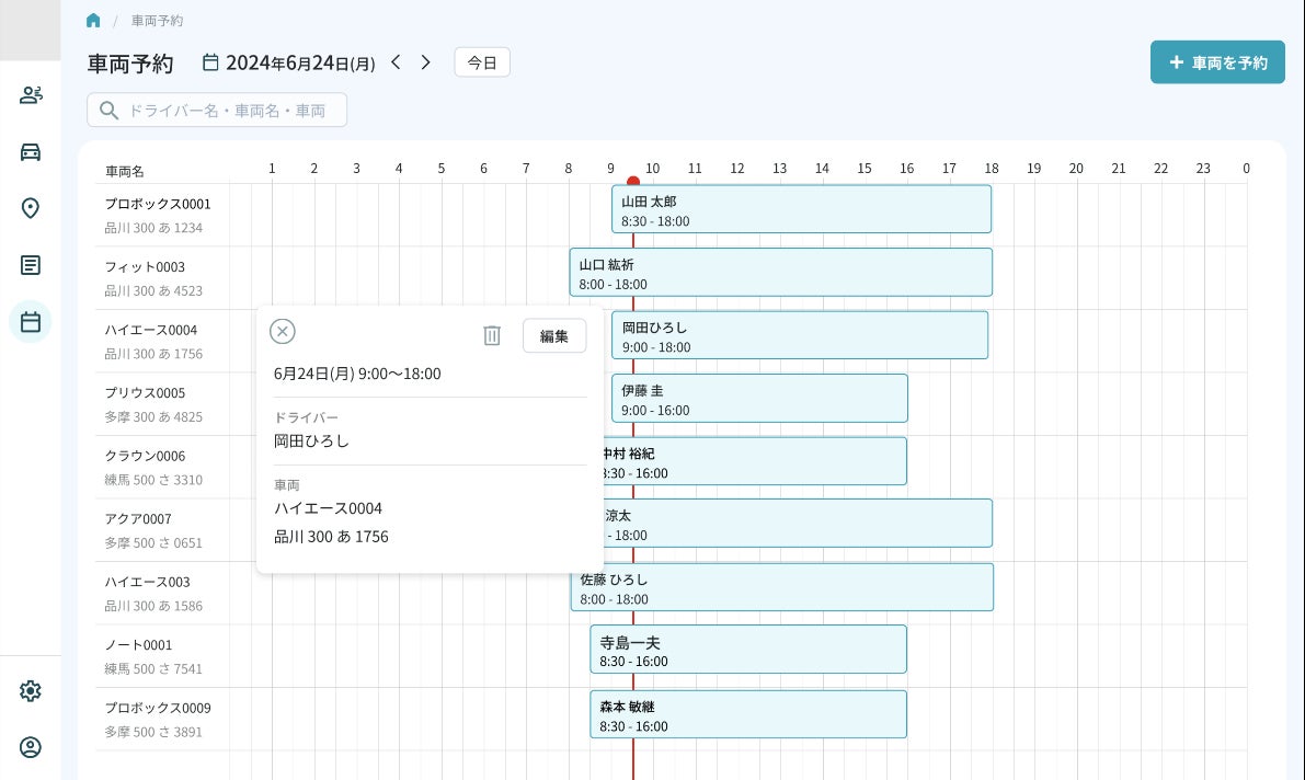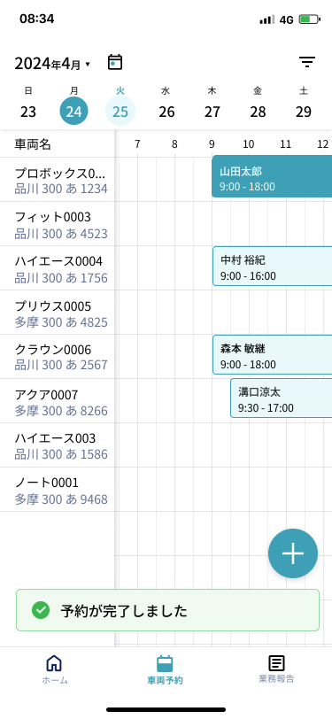 ・車両予約機能で、共用車の効率的な運用やレンタカーの乗車管理も可能