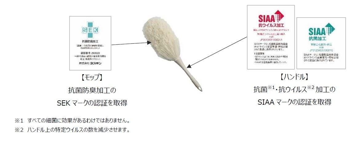 ※1 モップ繊維・ハンドル上の効果。すべての菌に効果があるわけではありません