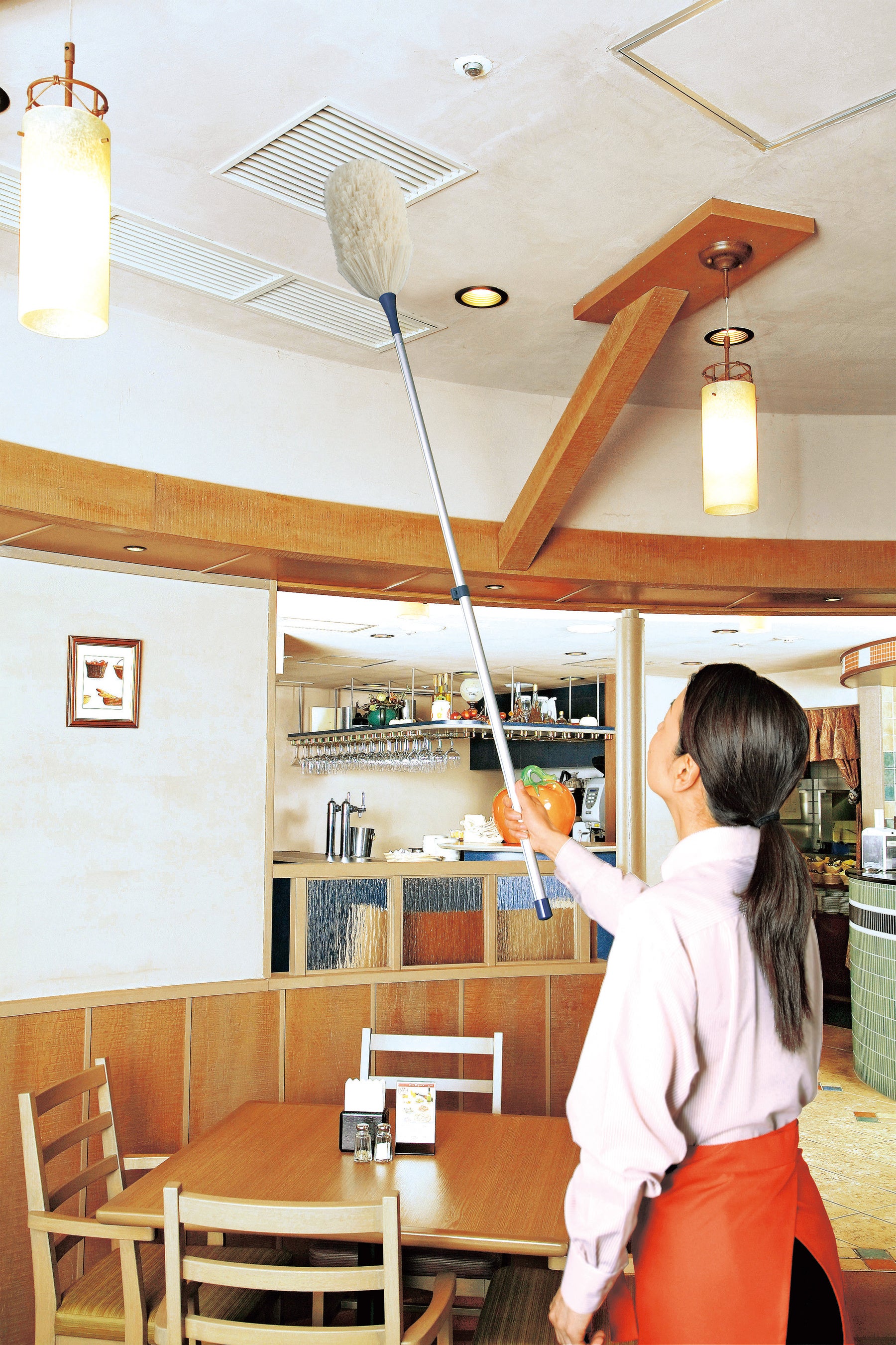 この度リニューアル販売する『抗菌エレクトロン』は、モップ・ハンドルともに抗菌仕様へ変更し、さらにモップパイルの細さ・形状・密度にこだわった独⾃の繊維構造の改良により、綿ホコリ捕集性能が約20%※2 アップしました。従来どおり薬剤や静電気を使⽤せず、繊維1 本1 本に植え付けている固定電荷の⼒でホコリを吸着するので、パソコンなどの電⼦機器から⾐類まで、さまざまな場所のおそうじにご使⽤いただけます。