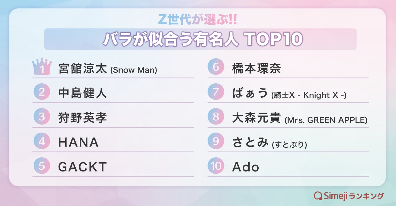 【Simejiランキング】Z世代が選ぶ!!「バラが似合う有名人TOP10」