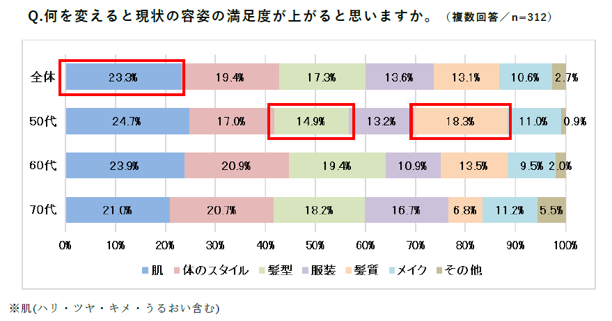 ◆容姿の満足度を決めるポイント 1位は「肌」 50代は髪質を重要視