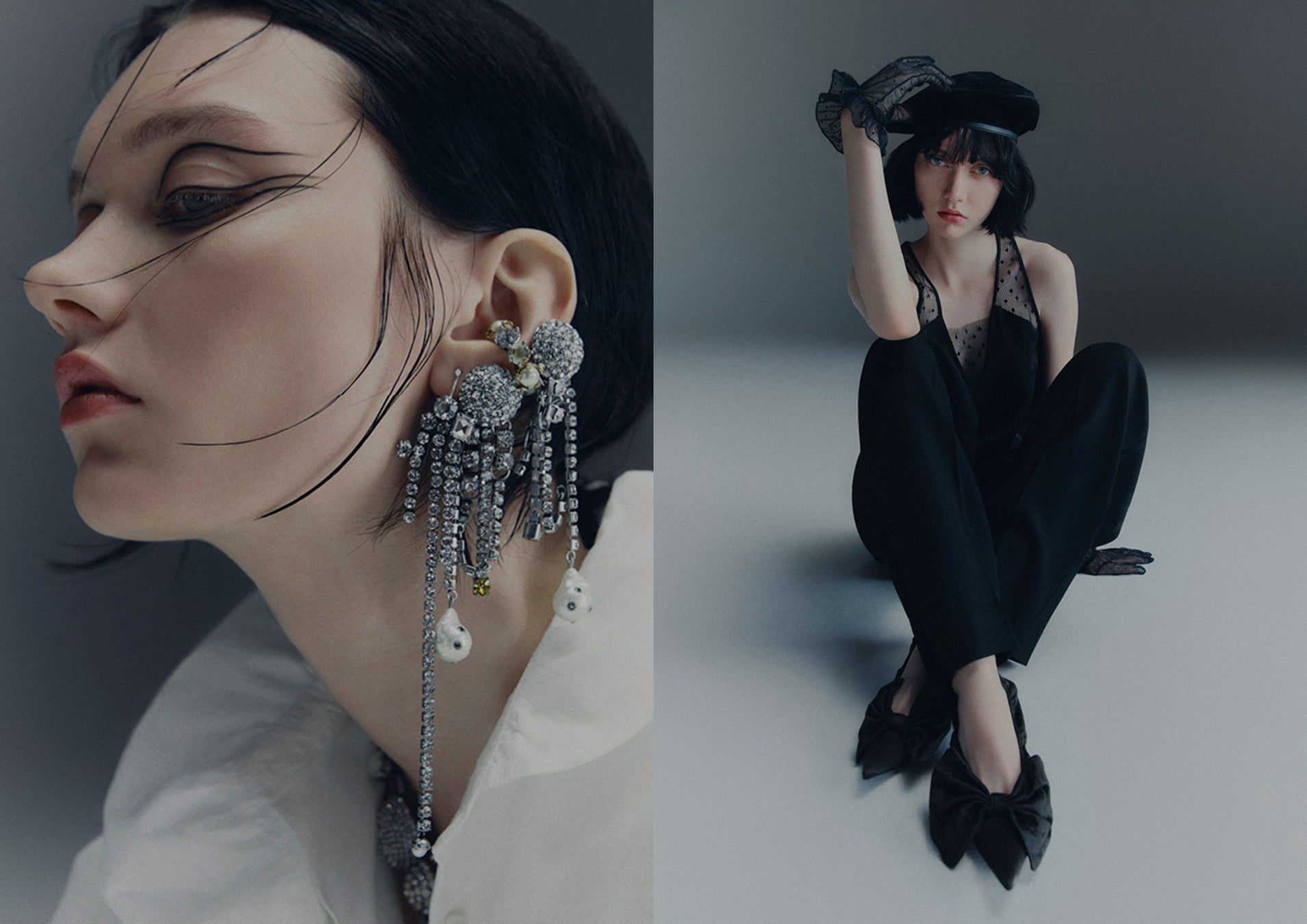 スタイリングにアクセントを加える大胆なデザインのアクセサリーも登場。大きなリボンが印象的なサテンのパンプス、ワイドでドレープ感が印象的なレザーのブーツ、ラッフル裾のレースのグローブ、様々な表情を魅せるレイヤードのネックレス、そしてベルベットデニム素材のベレー帽などが揃います。