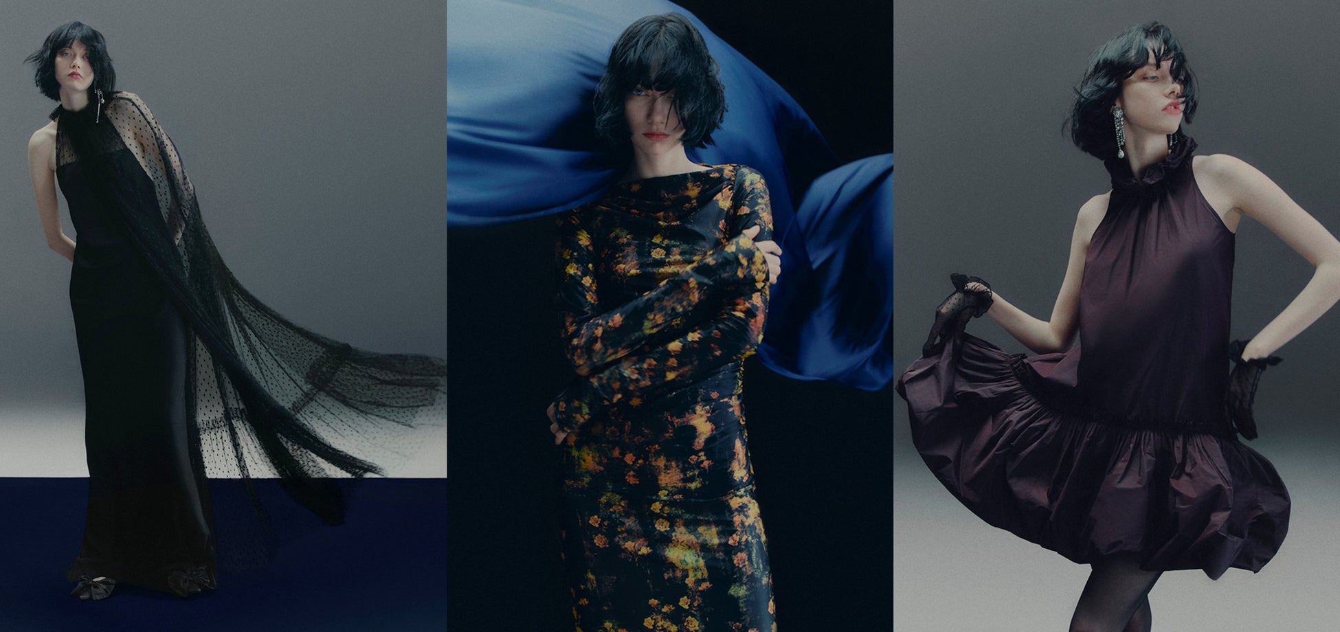存在感のあるラッフルドレス、肩のシャープなシルエットが特徴的なブレザー、ドラマティックなドットレース、シックなフローラルプリント、ウォッシュレザー、透け感のあるスパンコールメッシュなど、大胆で洗練されたラインアップが揃います。