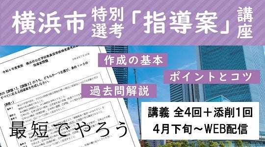 【教員採用試験】横浜市 特別選考「指導案試験」講座を新規開講します(4月下旬~WEB配信)