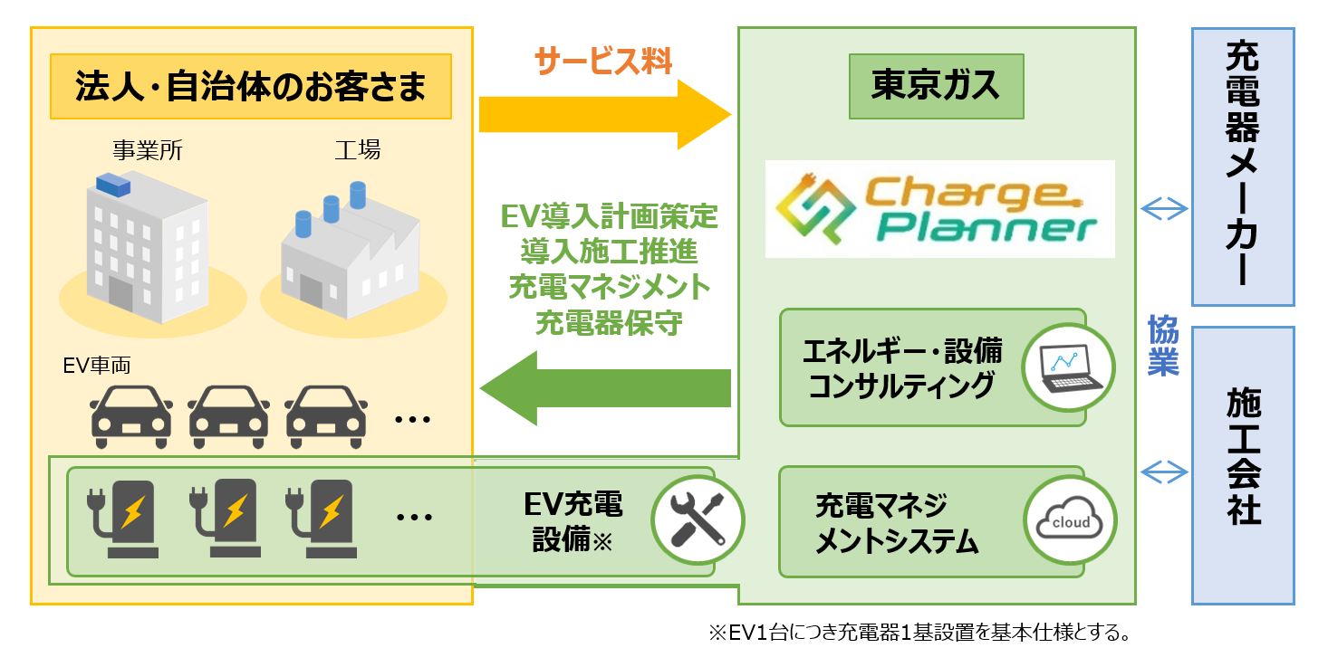 現在、グループ会社の東京ガスネットワーク株式会社(社長:沢田 聡、以下「TGNW」)にて、本サービスに基づくEV充電器および充電マネジメントシステムを導入しています。まずは関東エリア(*1)で対外向けにサービスを開始し、順次拡大していく予定です。