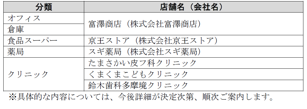 また、店舗には京王ストアやスギ薬局などの地域の皆さまの日常利便性に寄与する店舗が出店予定です。
