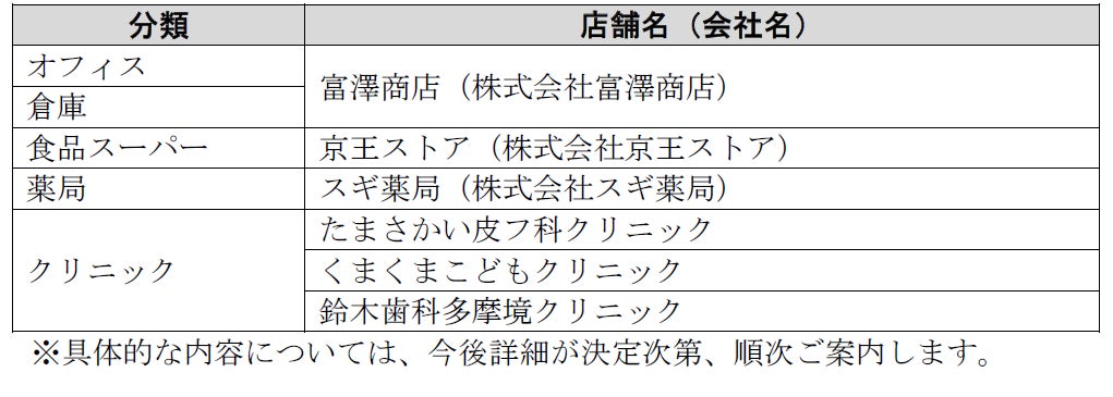 本施設では、店舗やオフィス、倉庫などのテナントが入居可能となっており、今回オフィスおよび倉庫には東京都町田市創業の歴史をもつ株式会社富澤商店(本社:東京都千代田区、取締役社長:富澤 淳、以下「富澤商店」)が入居予定です。富澤商店では本社機能及び神奈川県相模原市内にある既存倉庫や物流拠点についても本施設に集約します。