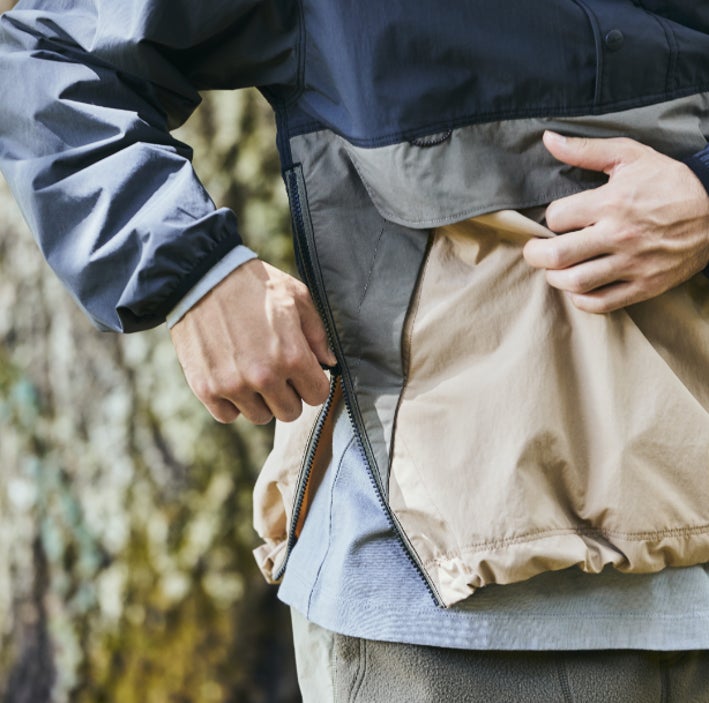してコレクションのロゴは「MT580」に搭載されたミッドスクールテクノロジーの象徴と言える「ROLLBAR(ロールバー)」からインスパイアされた三角のロゴグラフィックです。「MT580」に搭載されていたテクノロジーや、デザインを深堀りしつつ、パターンワーク、先端の素材開発、環境配慮した素材の採用など様々な方向からニューバランスのフィロソフィーをちりばめ、現代のアウトドアライフスタイルにフィットするコレクション「MT1996」が誕生しました。90年代当時を経て2020年代にリバイバルしているリラックスシルエットを全面的に採用し、ナチュラルなルックとハンドフィールを基本にしつつ、現代の素材による機能性を付加。さらには、生地のみならず一部トリムパーツまでリサイクルマテリアルを使用し、PFCフリー撥水や規制物質排除などニューバランスの高い環境配慮基準に則って開発されたエコ素材を採用しています。