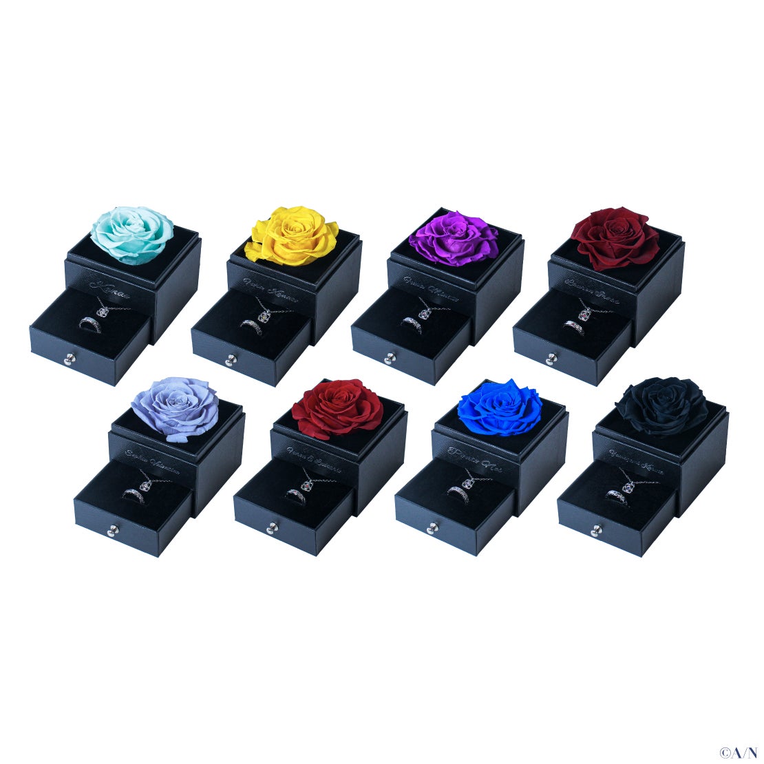 グッズラインナップは、アクリルスタンド、ランダムチェキ風カード、ジュエリー缶バッジ、ローズボックス入りリング&ネックレスセット、フォトフレーム&ブロマイドセット、練り香水の6種類。