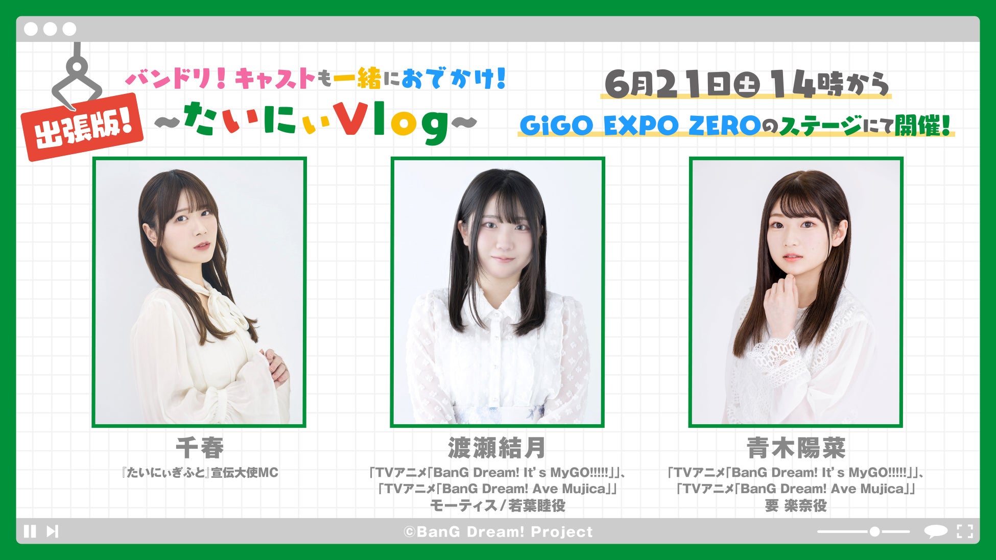 ●6月21日(土)14:00~15:00 出張版たいにぃVlog!バンドリ!キャストも一緒におでかけ!