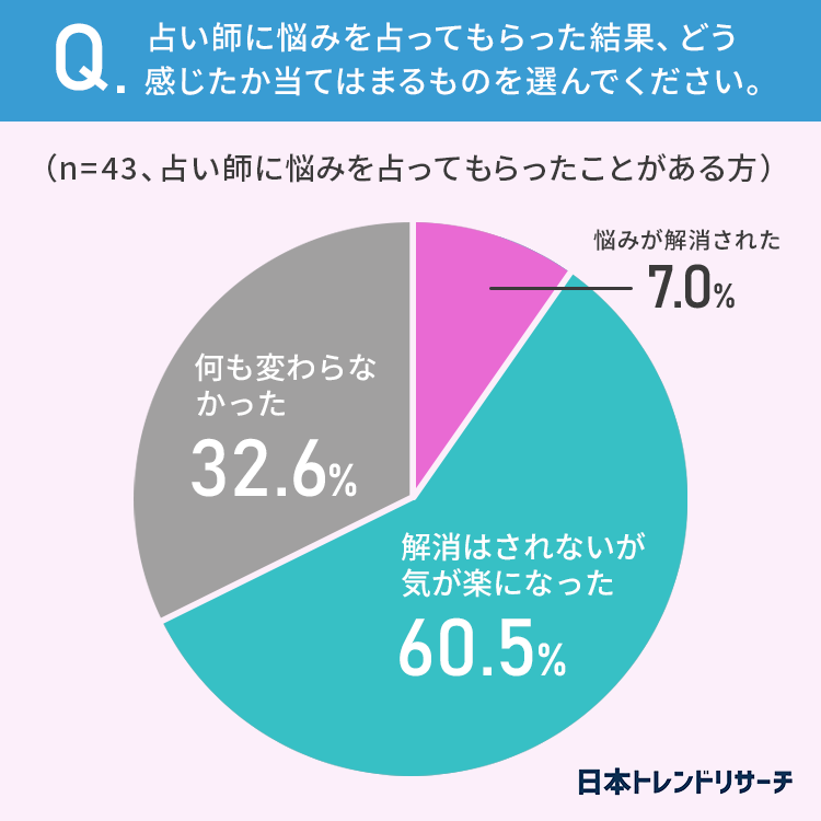さらに占い師に悩みを占ってもらった結果、どう感じたか当てはまるものを選んでもらいました。