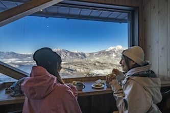 また、雄大な山々や野尻湖を一望する「野尻湖テラス」も同時に営業を開始します。テラスへは観光リフト(第 5 リフト)でアクセスでき、暖かく快適な屋内で雄大な景色を眺めながら、クラフトビールやドーナツなどをお召し上がりいただけます。スキーやスノーボードの合間はもちろん、ウィンタースポーツをされない方も気軽にリフトに乗ってお楽しみいただけます。