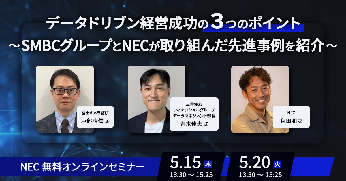 NEC、オンラインセミナー「データドリブン経営成功の3つのポイント ~SMBCグループとNECが取り組んだ先進事例を紹介~」を開催