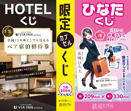 【ひなたくじ】ヴィアインホテルズの鉄道むすめ「水城 ひなた」の卓上ミニパネル(1等)や、オリジナルマイボトルやパスケース等、「ここでしか手に入らない」水城 ひなたの限定グッズが必ず当たります。