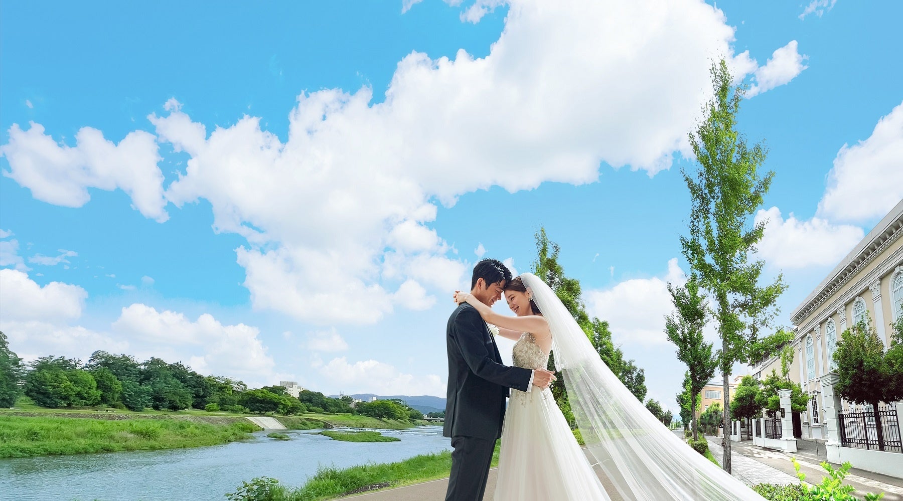 旧き良き歴史が薫る鴨川沿いの美しい佇まい「京都 アートグレイス ウエディングヒルズ」。京都本来の静けさに包まれた敷地内には、荘厳なチャペルと趣の異なる3タイプの貸切邸宅が備わった非日常の別世界。